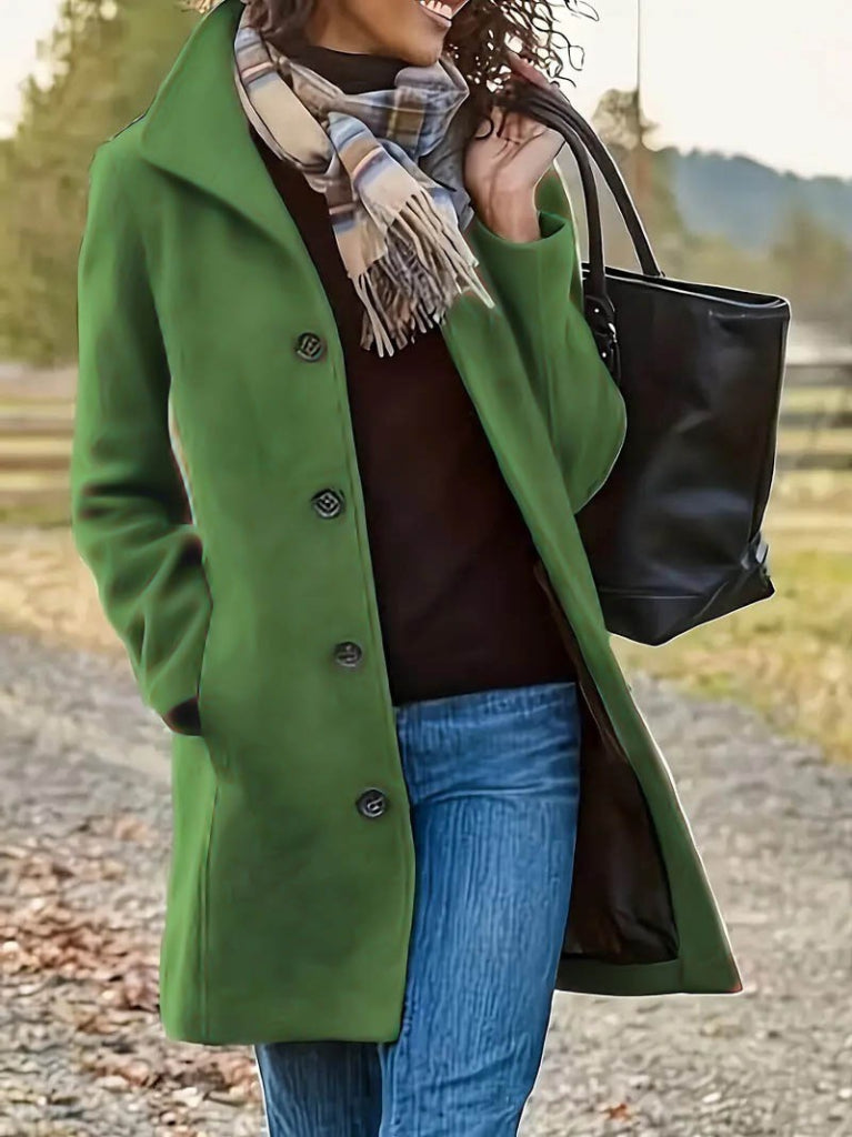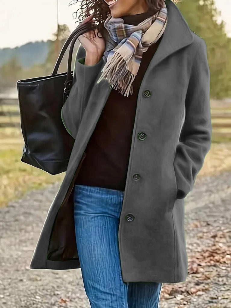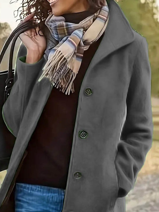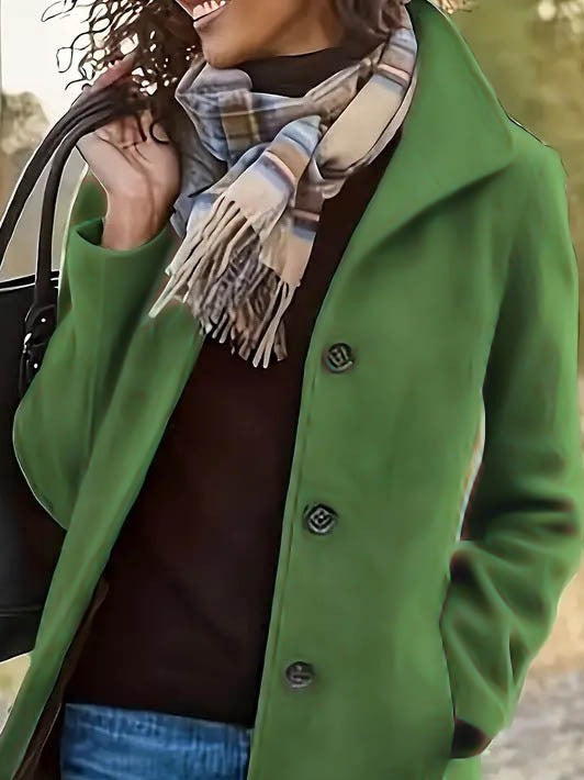 Kadın Uzun Kollu Dik Yakalı önden Düğmeli Kısa Kaşe Kaban