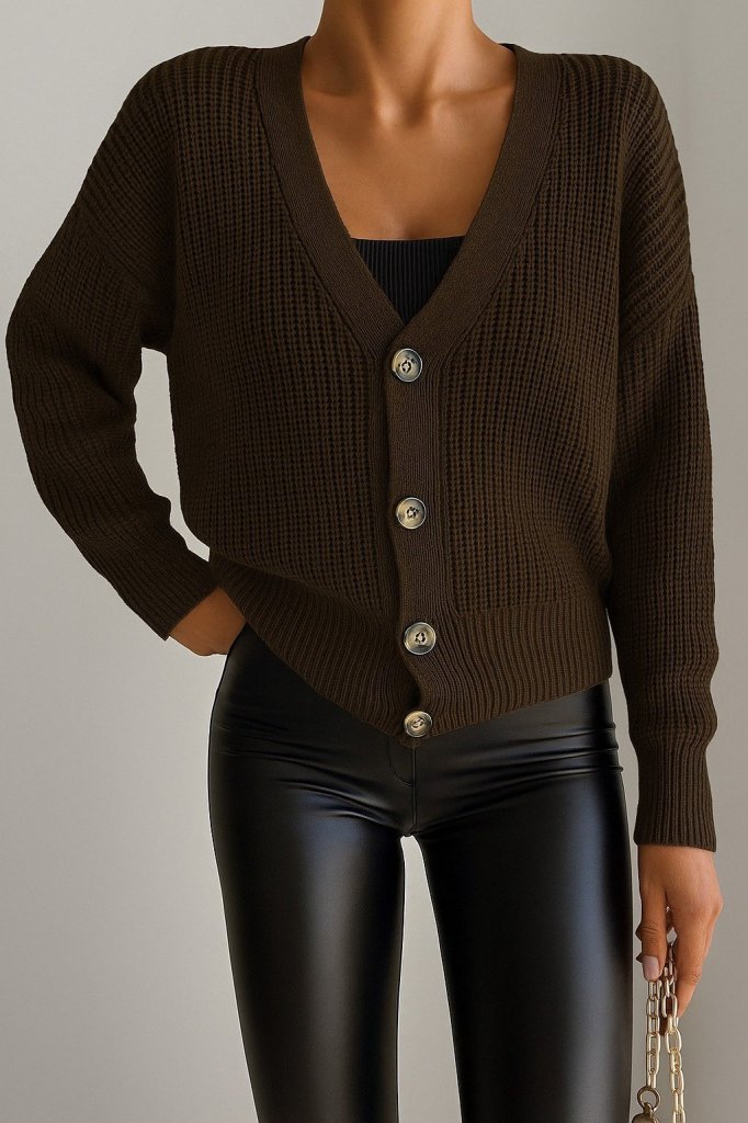 Kadın Uzun Kollu Düğme Detay Triko Hırka