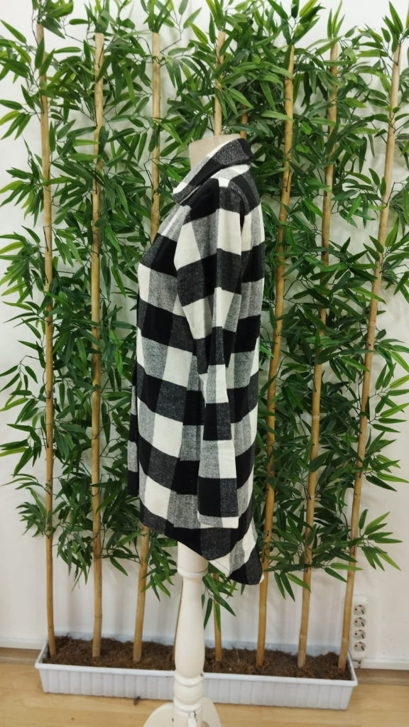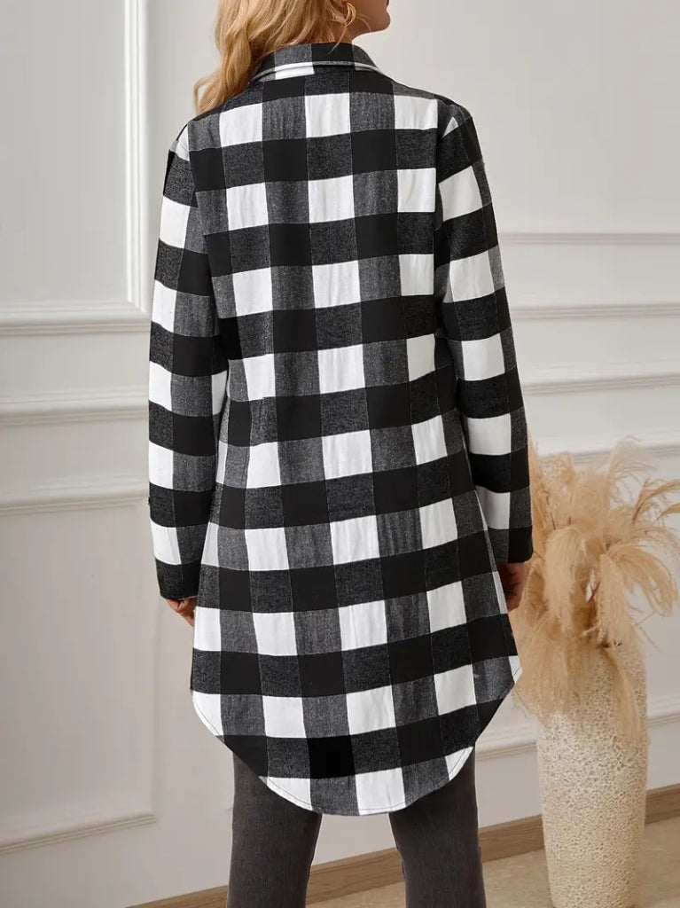Kadın Uzun Kollu Ekoseli önden Düğmeli Dokuma Uzun Gömlek