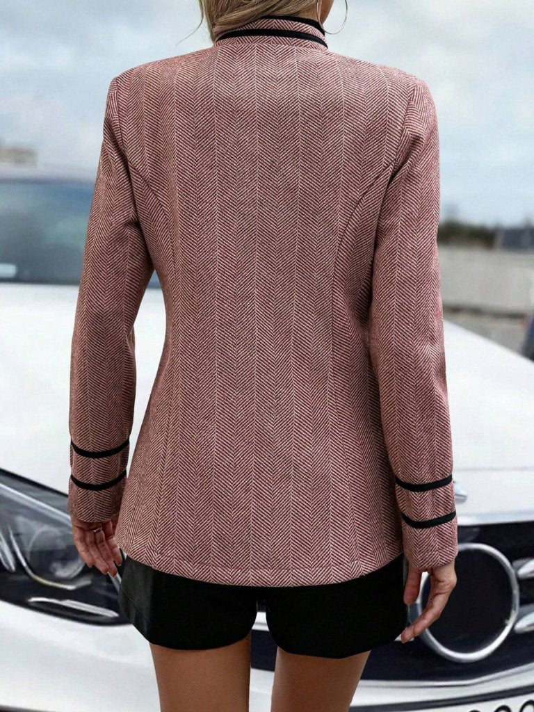 Kadın Uzun Kollu Hakim Yaka Düğme Detaylı Mini Dokuma Ceket