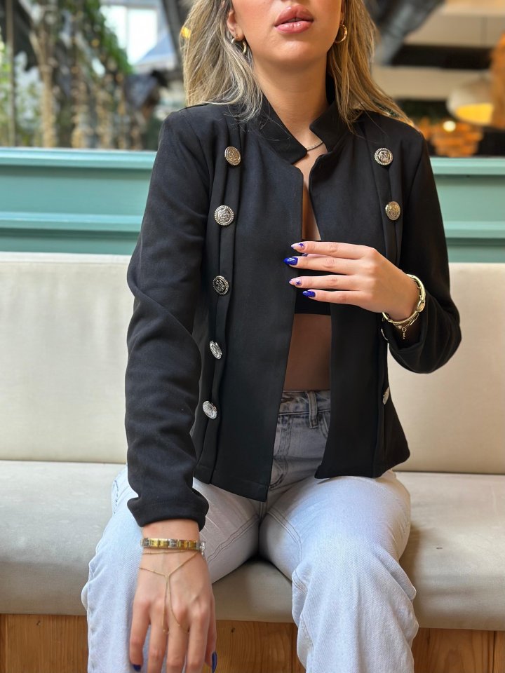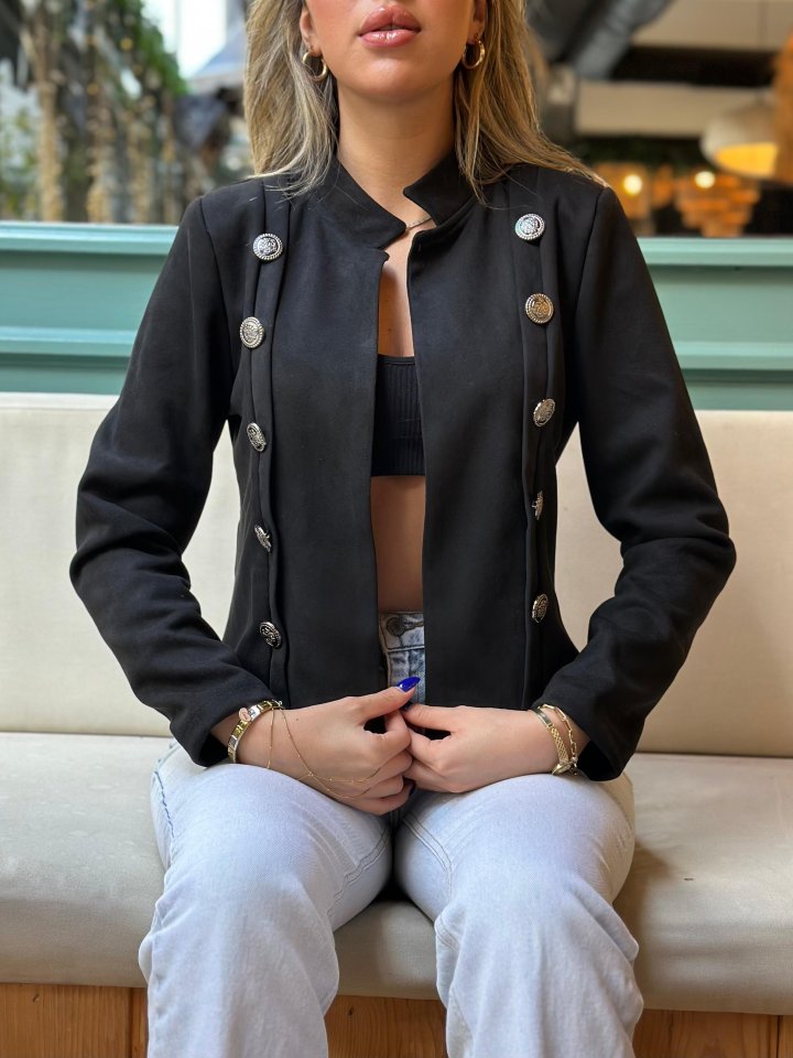 Kadın Uzun Kollu Hakim Yaka Yanlardan Düğmeli Kısa Süet Ceket