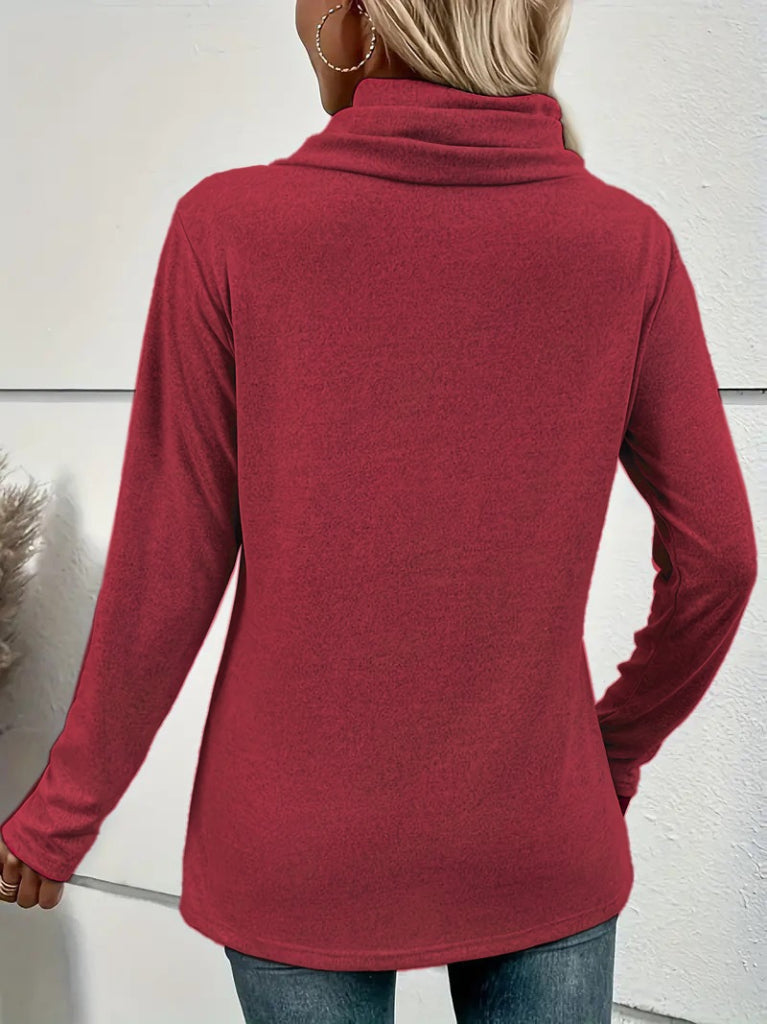 Kadın Uzun Kollu Kapişon Yaka Düğmeli Yumoş Bluz