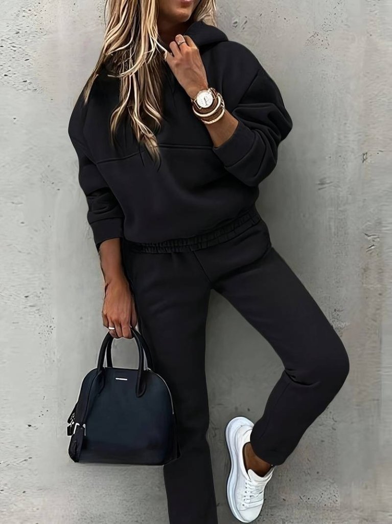 Kadın Uzun Kollu Kapşonlu Alt Ve üst Iki Iplik şardonlu Eşofman Takım