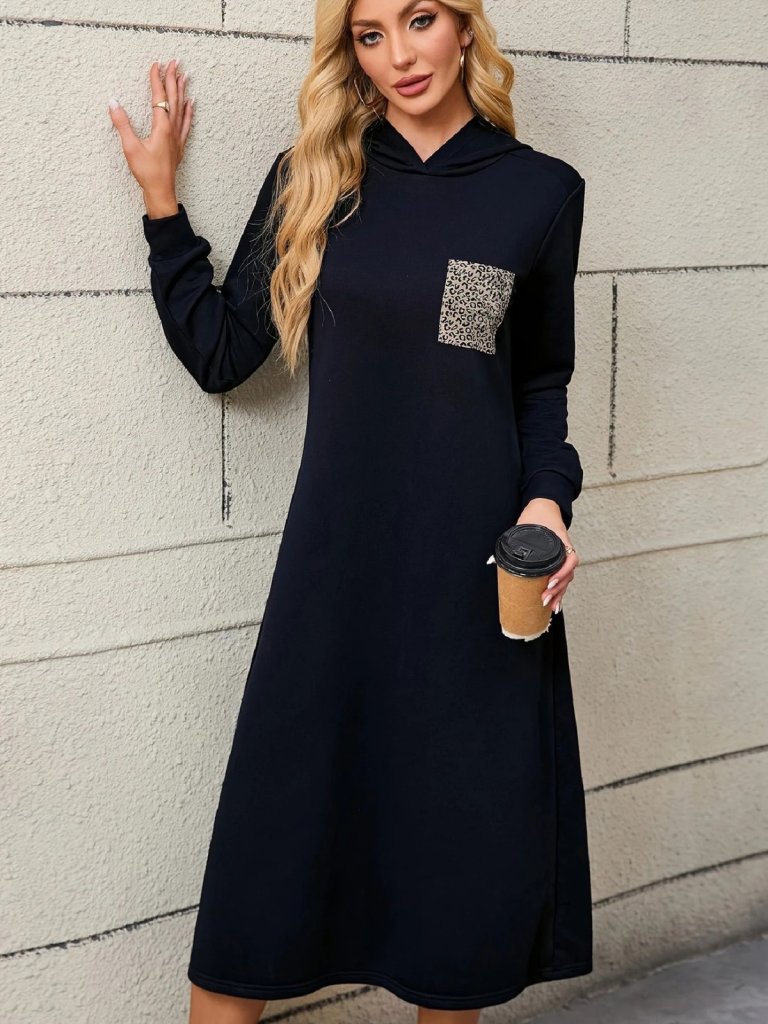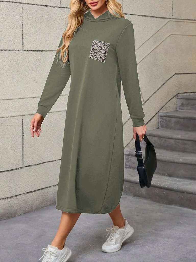 Kadın Uzun Kollu Kapşonlu Cep Detaylı Viskon Iki Iplik Maxi Elbise