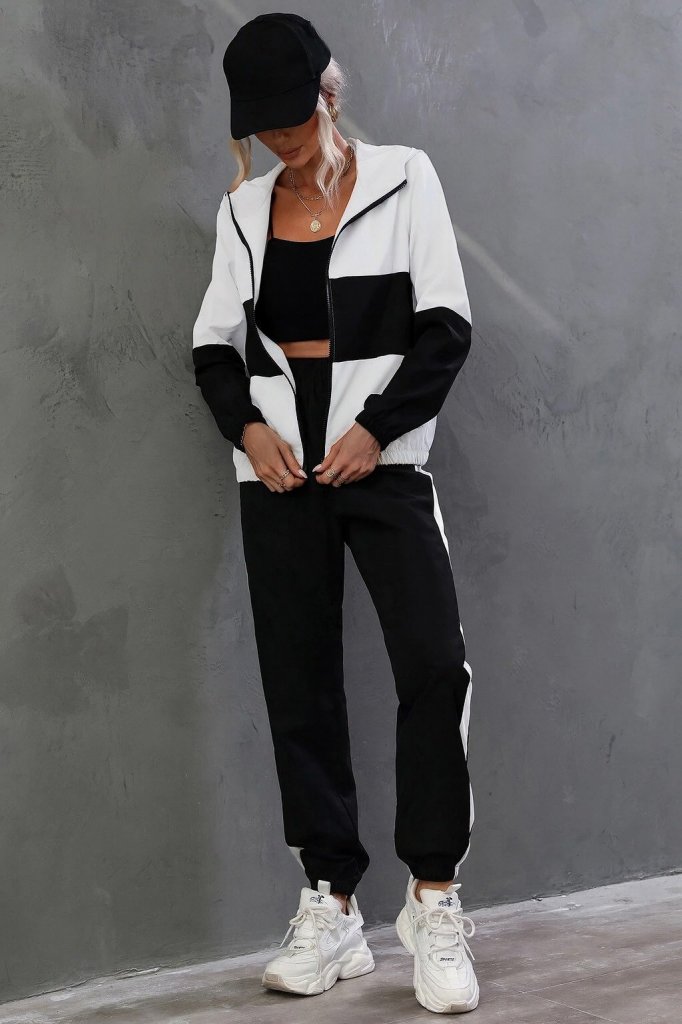 Kadın Uzun Kollu Kapşonlu önden Fermuarlı Viskon Iki Iplik Bluz Ve Pantolon Ikili Takım