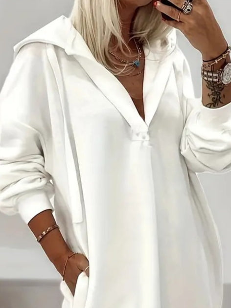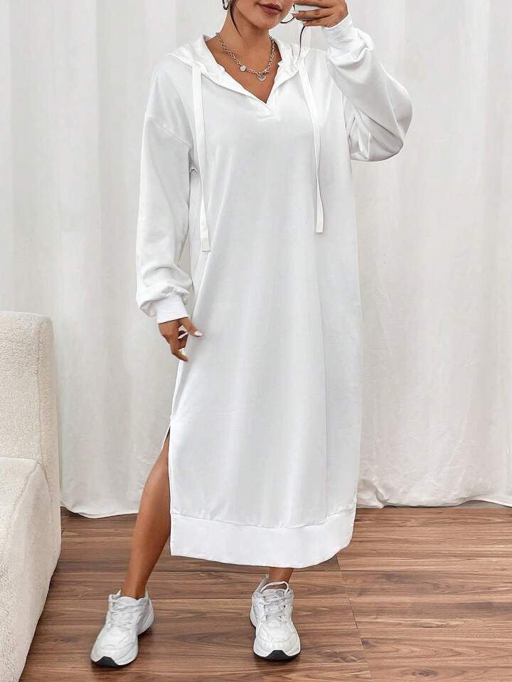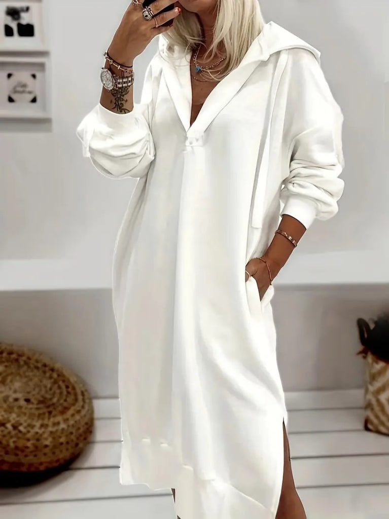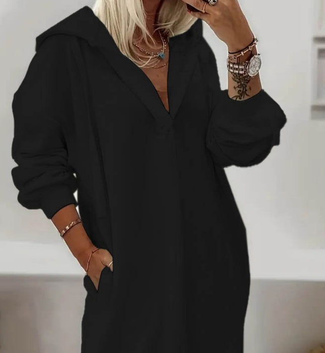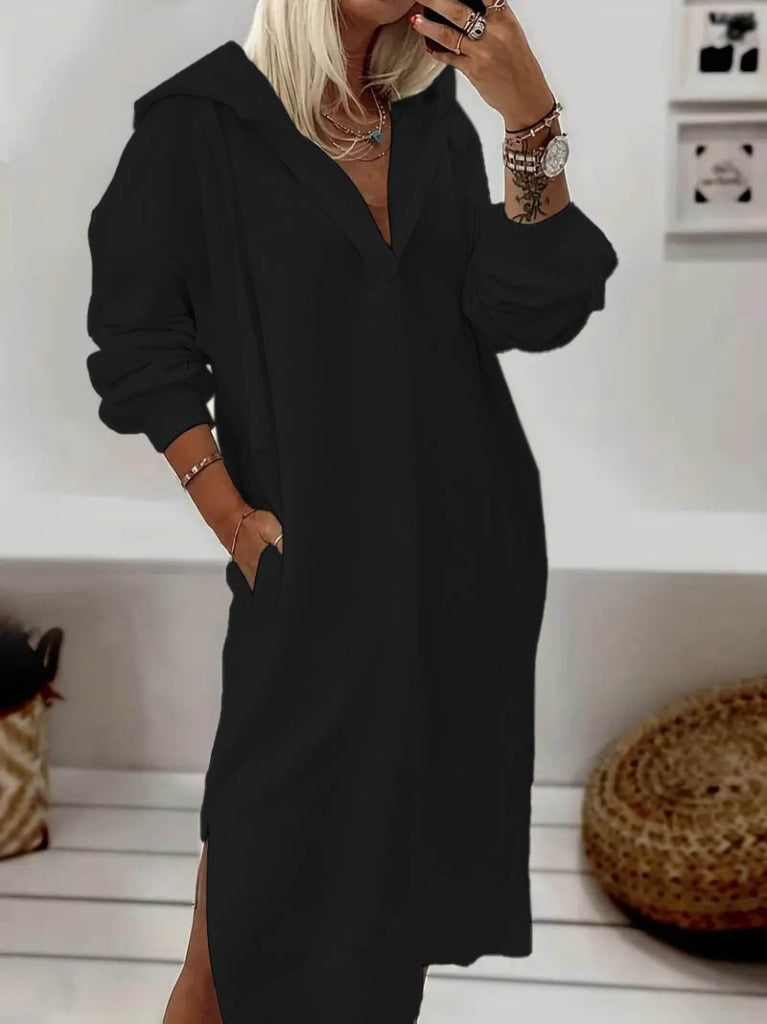 Kadın Uzun Kollu Kapüşonlu Yakası Açık Modal Elbise