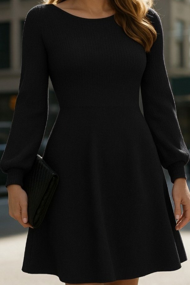 Kadın Uzun Kollu Kayık Yaka Kısa Triko Elbise