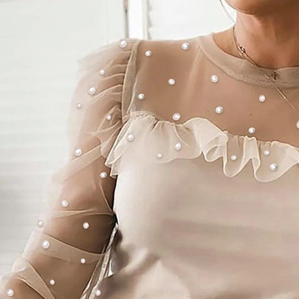 Kadın Uzun Kollu Kol Ve Yaka Tül Ve Inci Detay Viskon Bluz