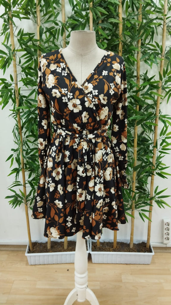 Kadın Uzun Kollu Kruvaze Yaka çiçek Desenli Dalgıç Elbise