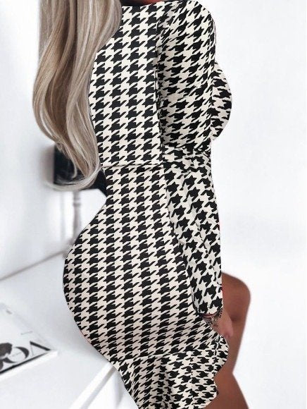 Kadın Uzun Kollu Kruvaze Yaka Kazayağı Mikro Mini Boy Elbise