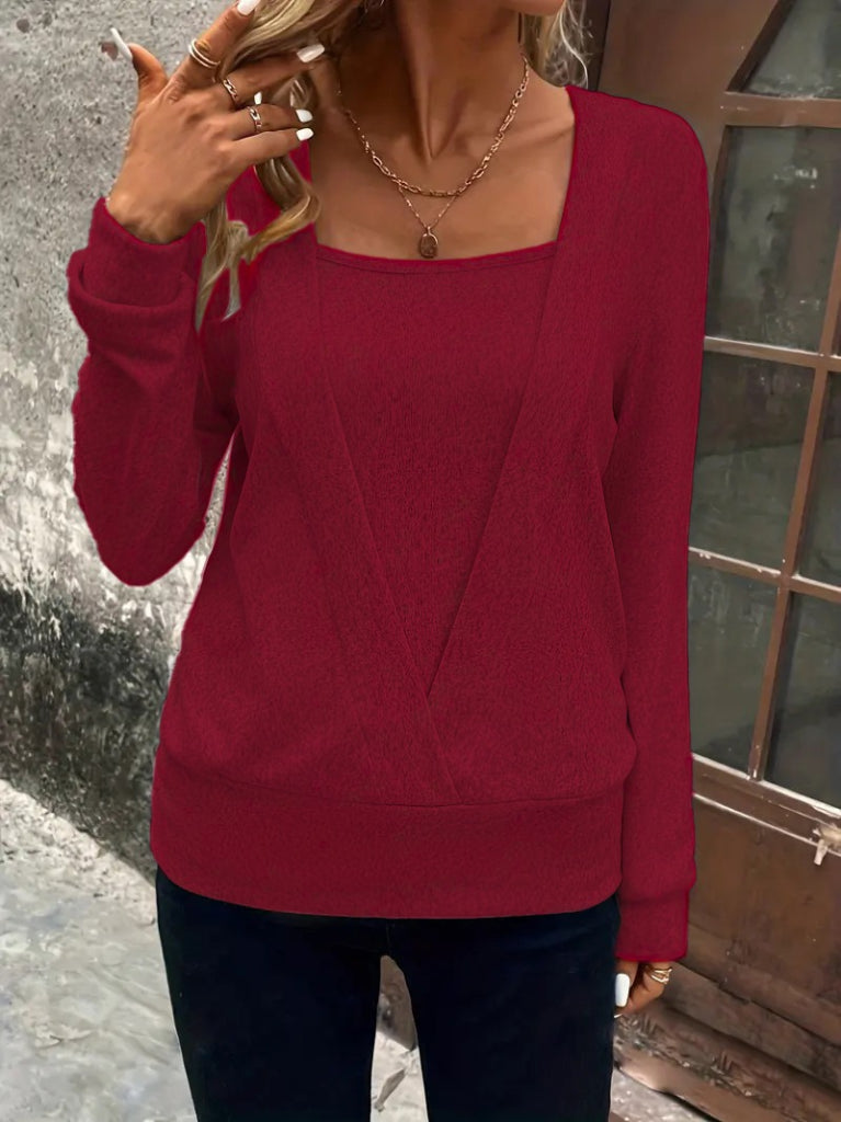 Kadın Uzun Kollu Kruvaze Yaka Kol Ve Etek Ucu Manşet Detay Yumoş Bluz