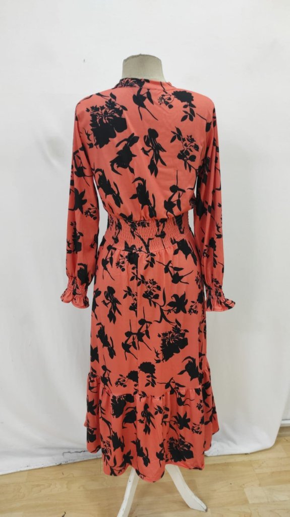Kadın Uzun Kollu Kruvaze Yakalı çiçek Desenli Maksi Süprem Elbise