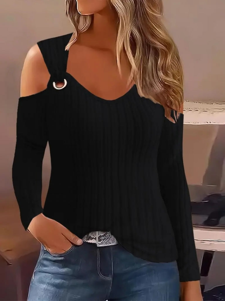Kadın Uzun Kollu Kuş Gözü Detay Omuz Dekoltesi şardonlu Kaşkorse Bluz