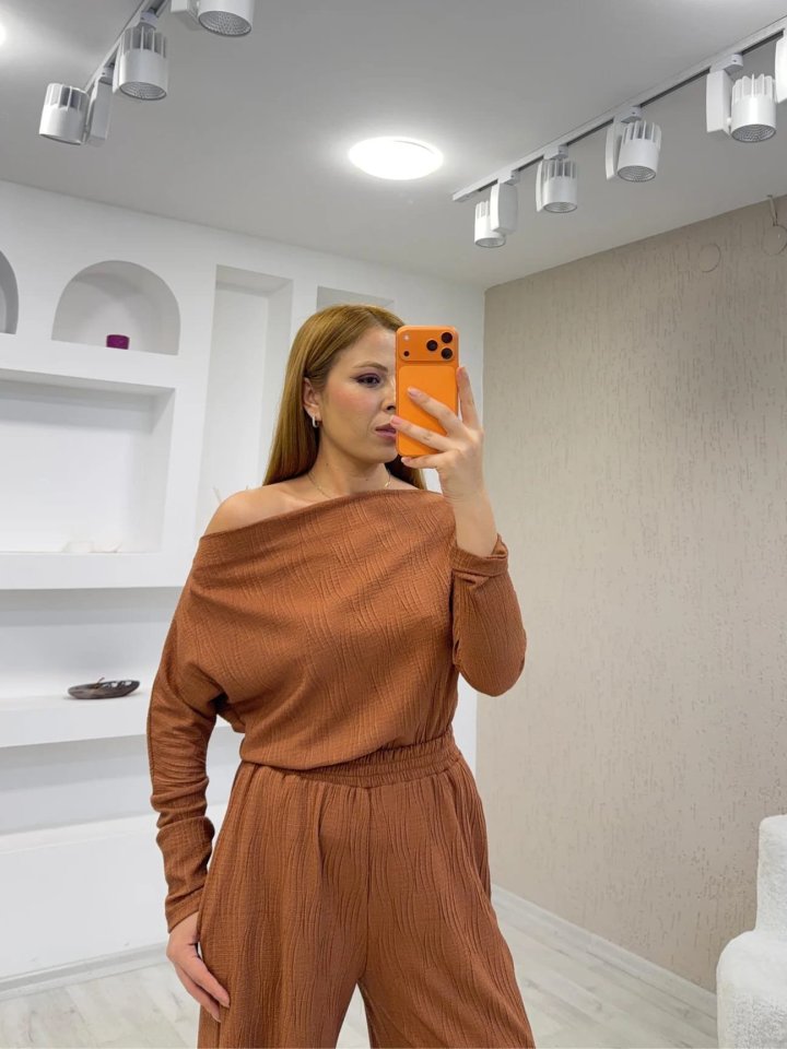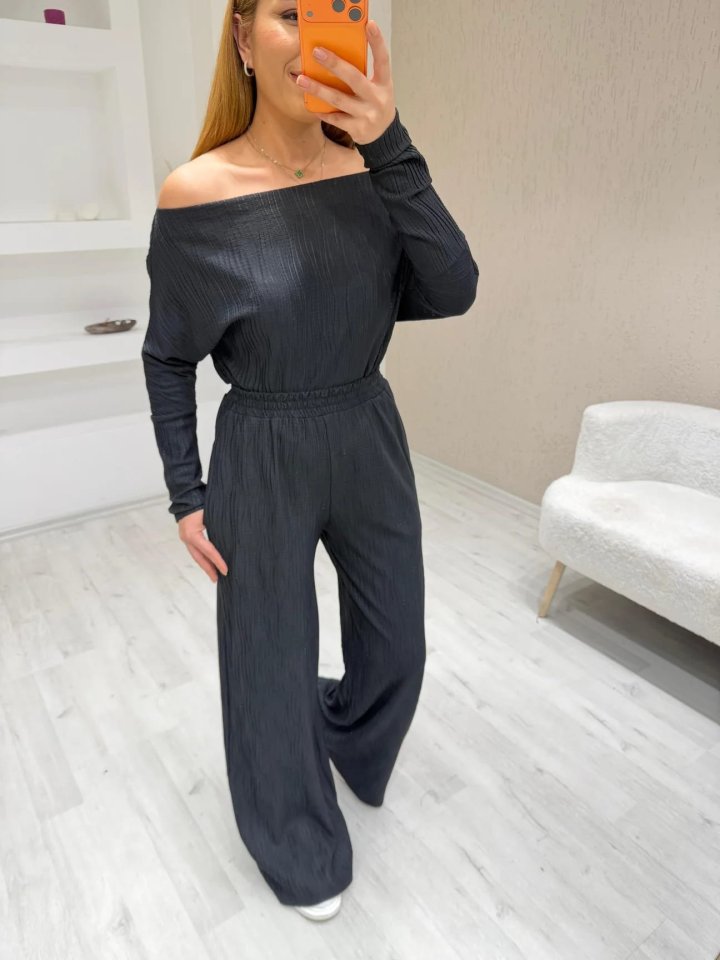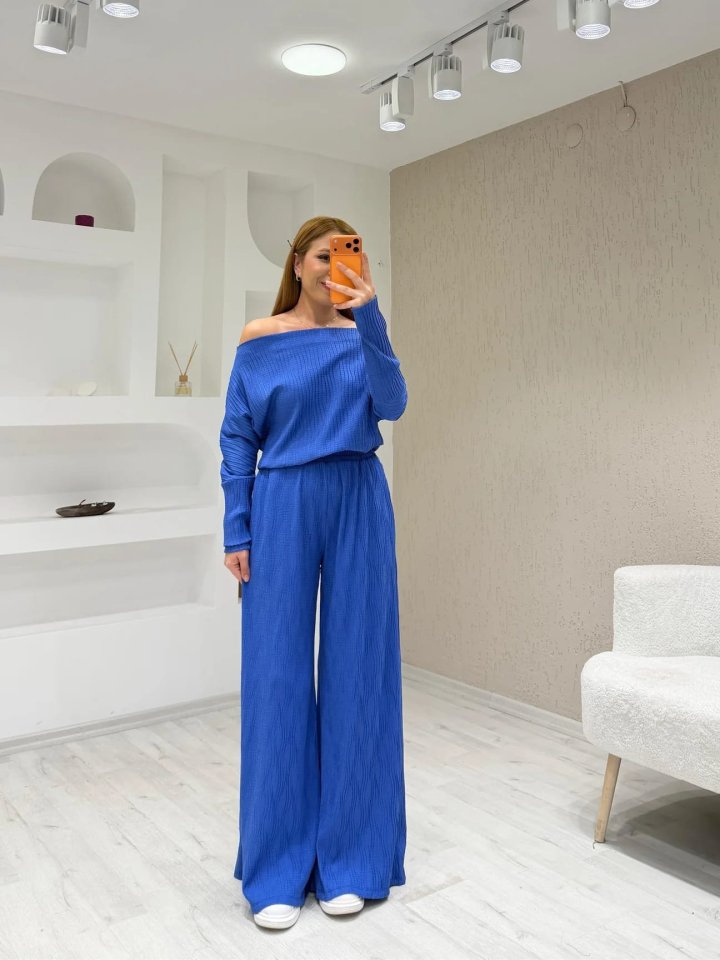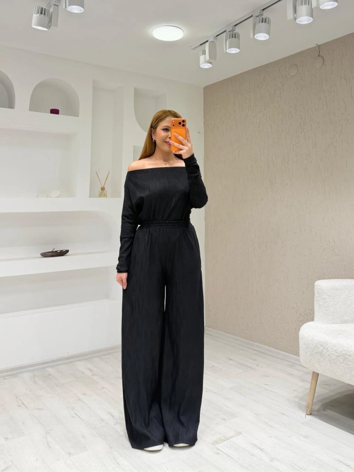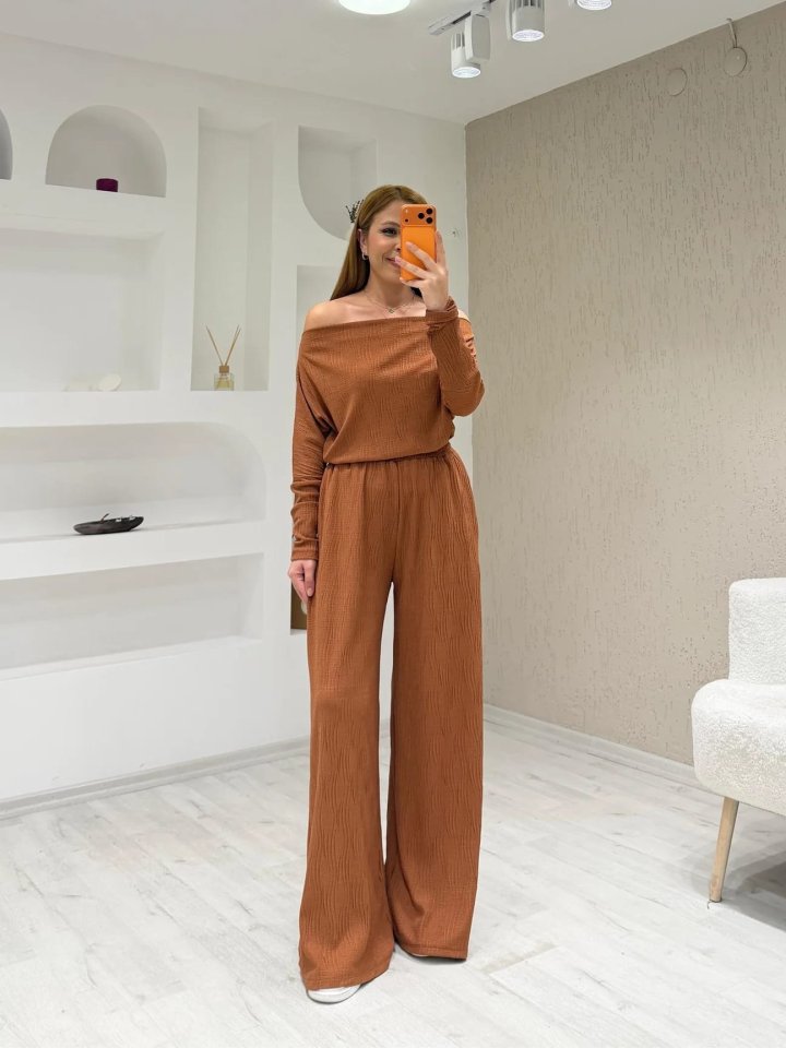 Kadın Uzun Kollu Omuz Dekolteli Bluz Ve Palazzo Pantolon Ikili Takım