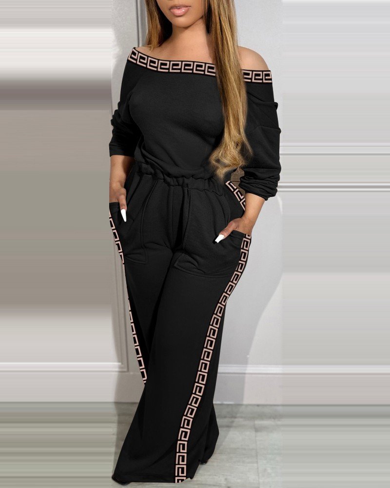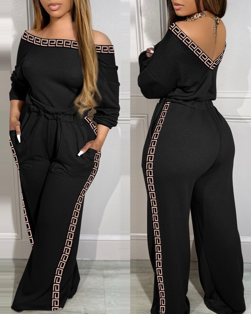 Kadın Uzun Kollu Omuzlardan Açık Beli Lastikli Cepli şerit Desenli Viskon Iki Iplik Tulum