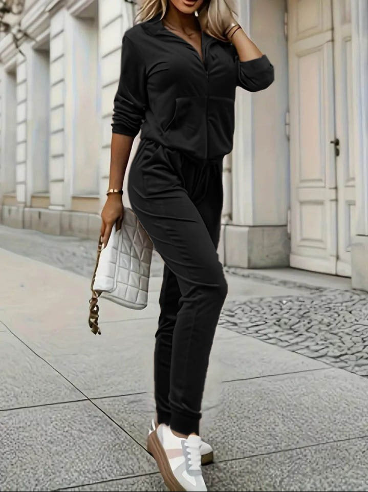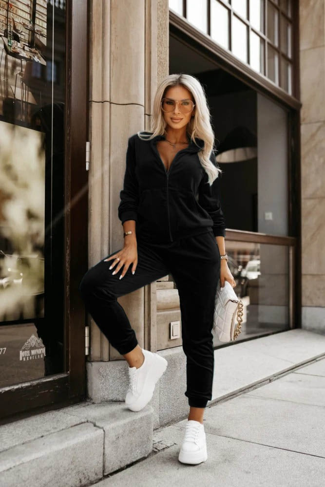 Kadın Uzun Kollu önden Cepli Fermuarlı Kadife Bluz Ve Pantolon Ikili Takım
