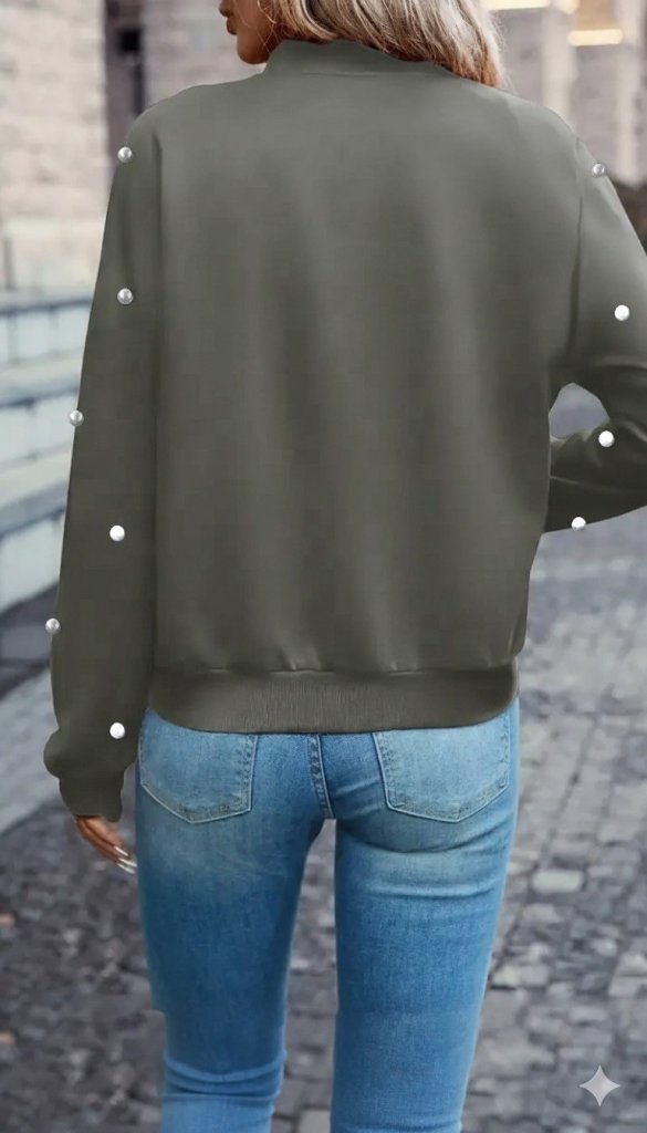 Kadın Uzun Kollu önden Fermuarlı Incili Kısa Modal Ceket