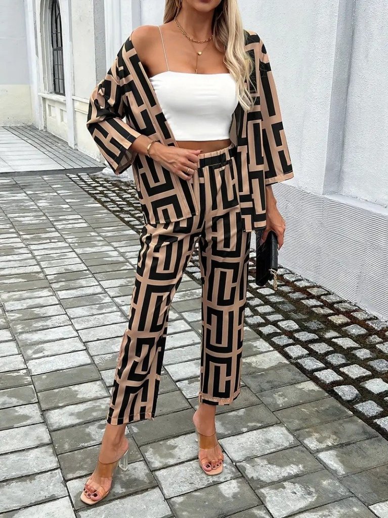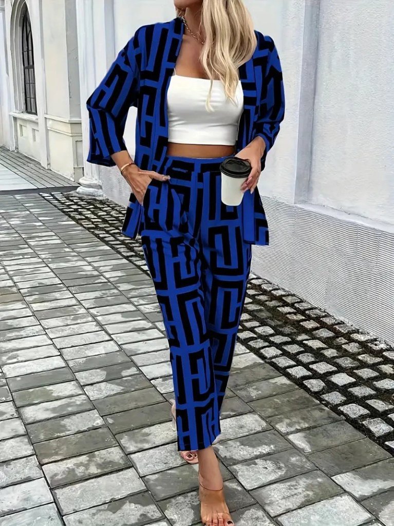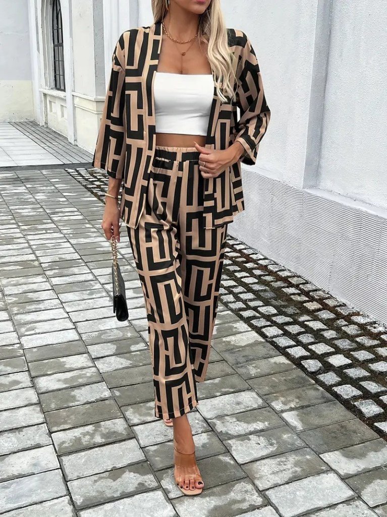 Kadın Uzun Kollu önü Açık Desenli Iki Iplik Ceket Ve Pantolon Ikili Takım
