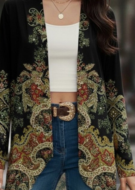 Kadın Uzun Kollu önü Açık Desenli şardonlu Dalgıç Ceket
