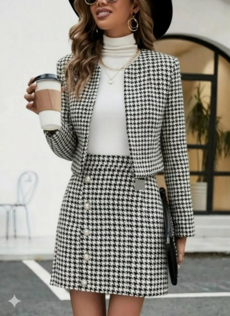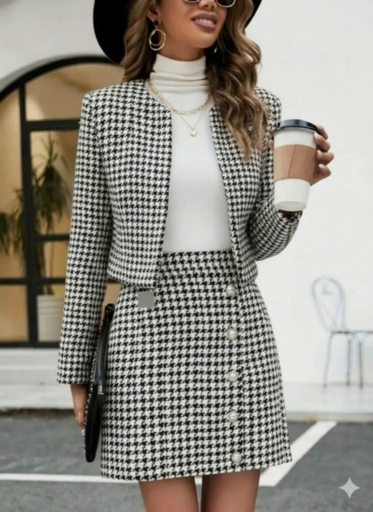 Kadın Uzun Kollu önü Açık Dokuma Ceket Ve Mini Etek Ikili Takım
