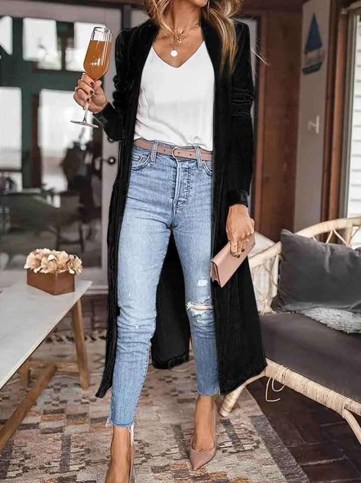 Kadın Uzun Kollu önü Açık Kolları Uzun Midi Ceket