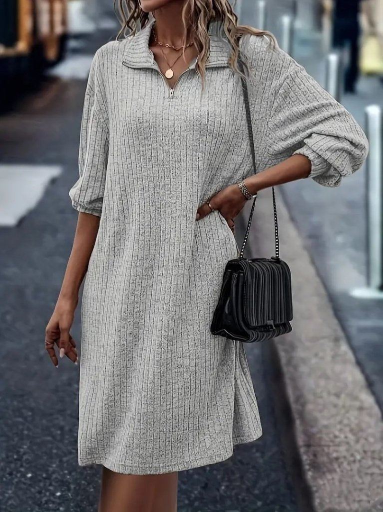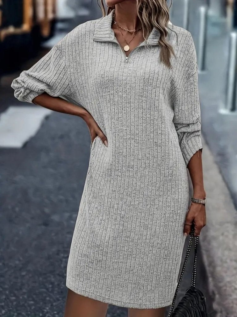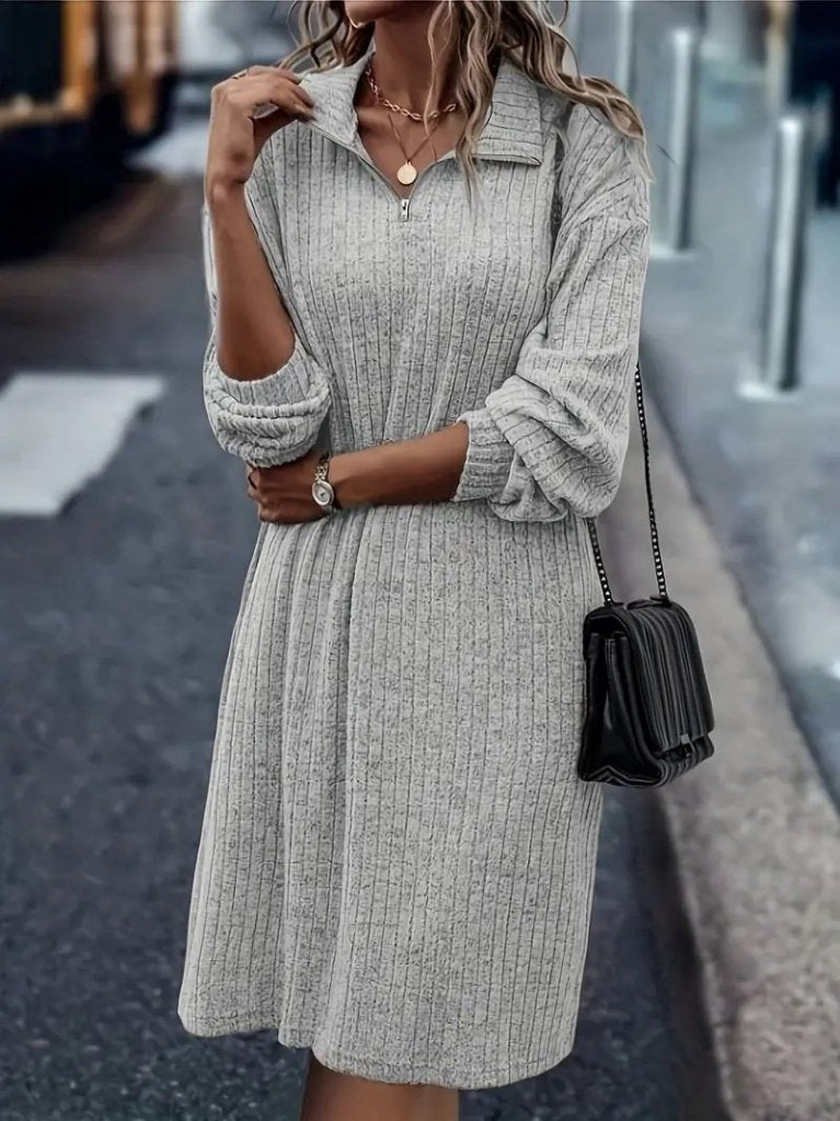 Kadın Uzun Kollu Polo Yaka Fermuar Detaylı şardonlu Kaşkorse Mini Boy Elbise