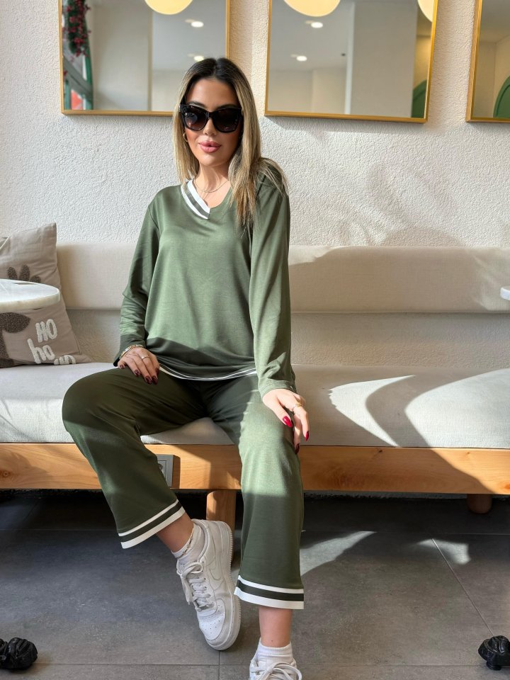 Kadın Uzun Kollu Ribana Detay Viskon Iki Iplik Ikili Takım
