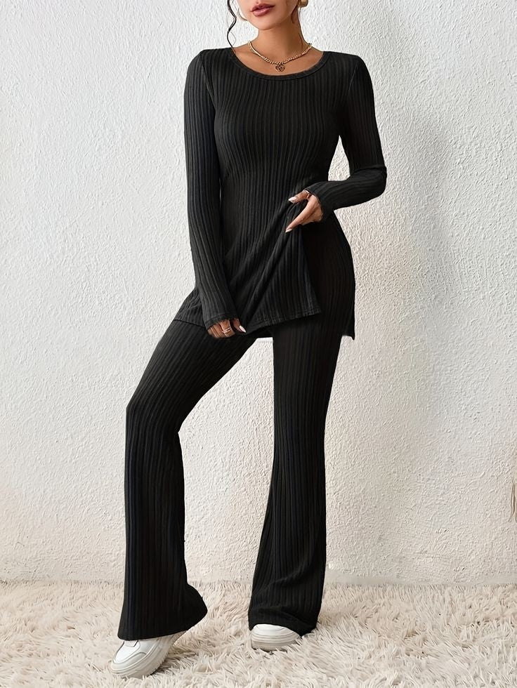 Kadın Uzun Kollu şardonlu üst Uzun Yanları Yırtmaçlı Alt Ispanyol Kaşkorse Ikili Takım