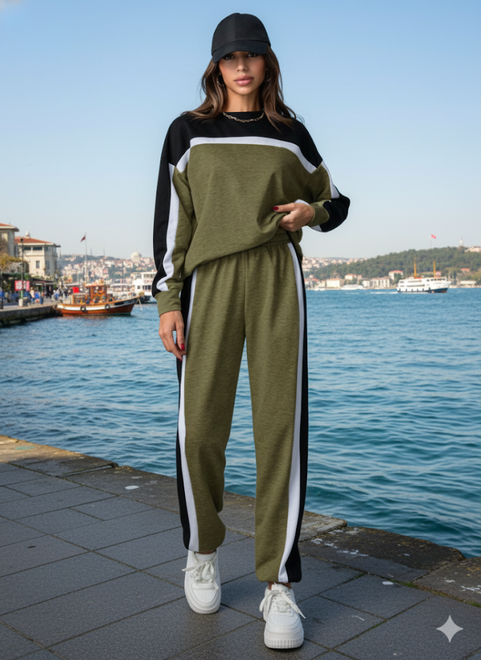 Kadın Uzun Kollu şerit Detay Eşofman Takım