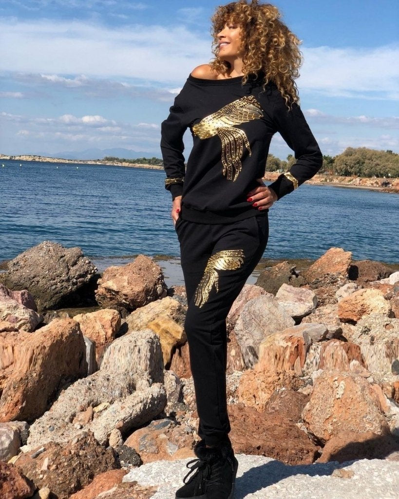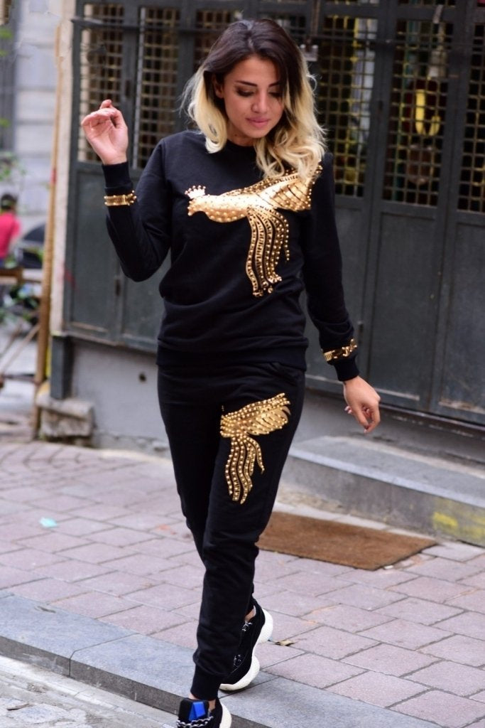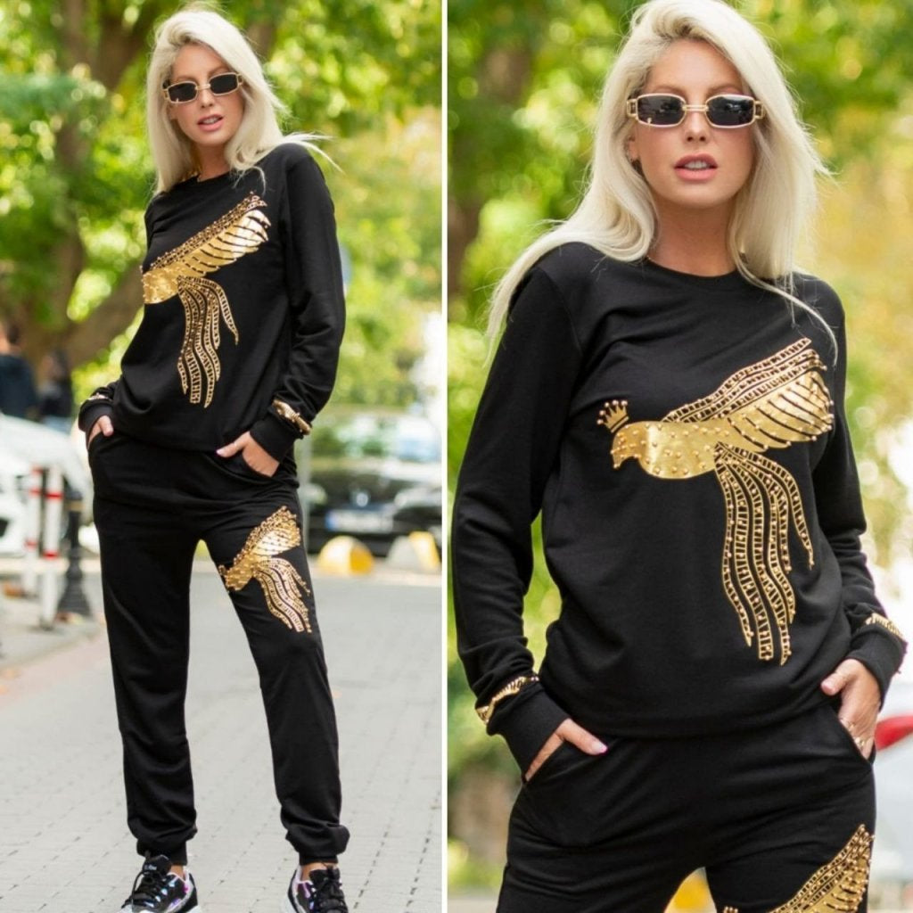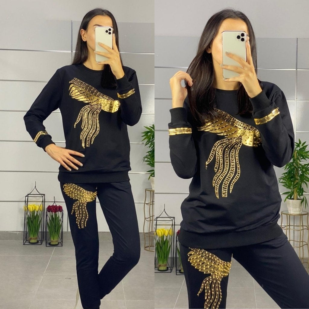 Kadın Uzun Kollu Tavus Kuşu Baskılı Iki Iplik Ikili Takım