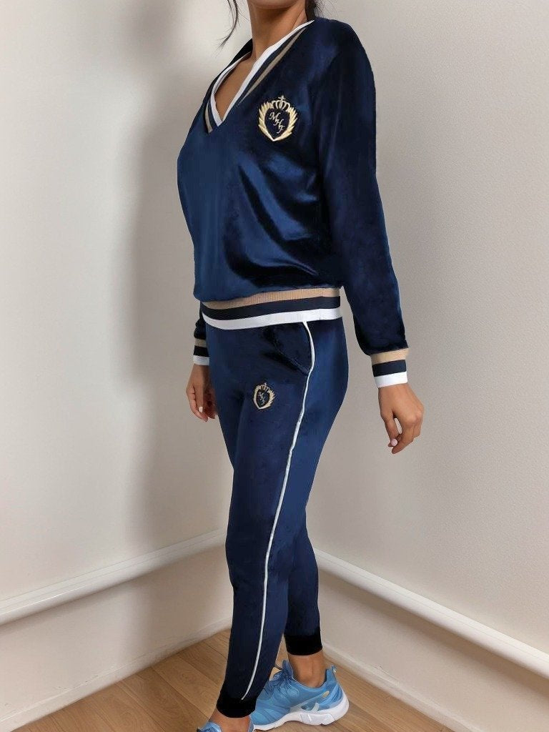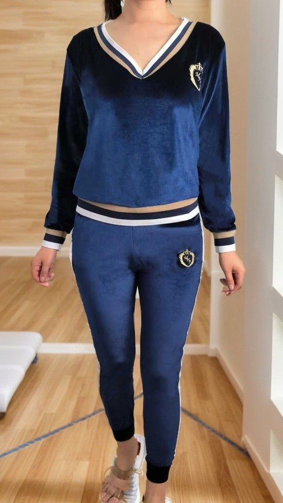 Kadın Uzun Kollu V Yaka Yakası Ve Kol Ağzı şerit Detay Kadife Takım