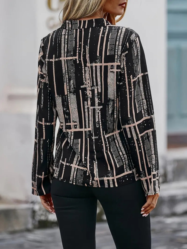Kadın Uzun Kollu V Yakalı Desenli Dalgıç Bluz