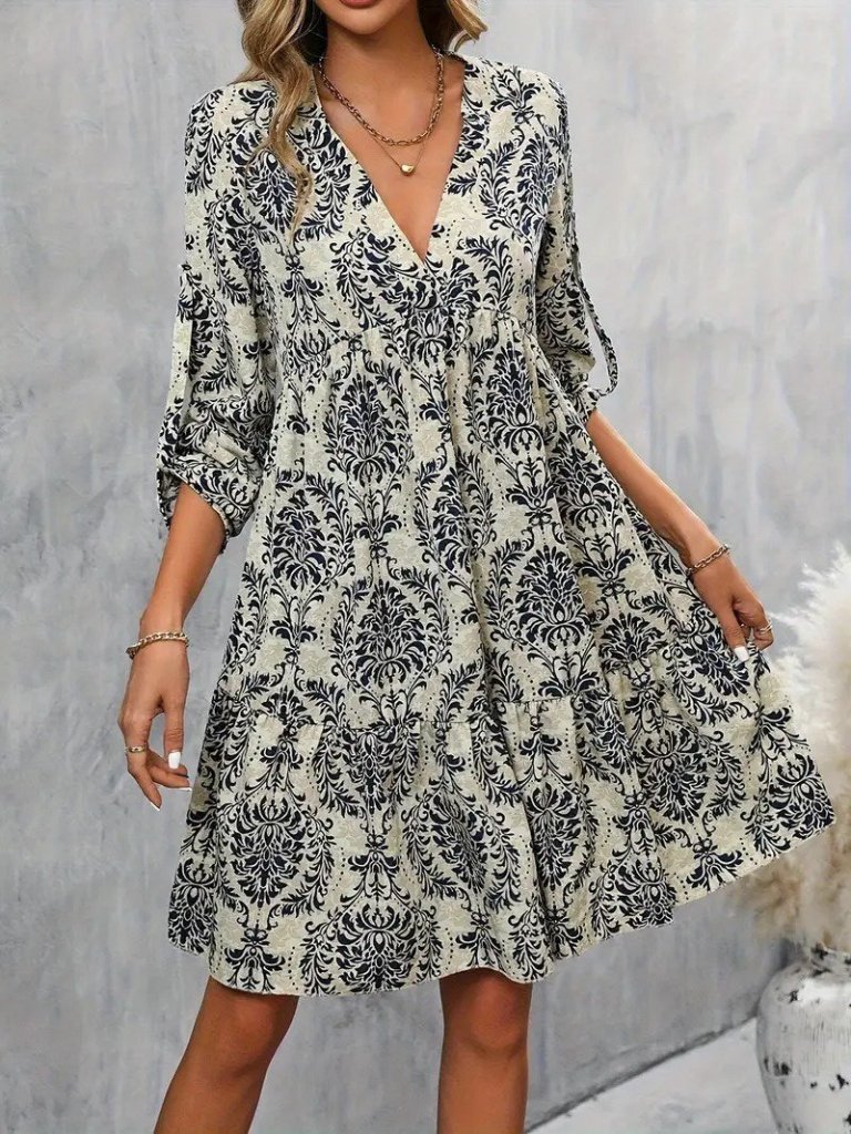 Kadın Uzun Kollu V Yakalı Fırfırlı Mini Süprem Elbise
