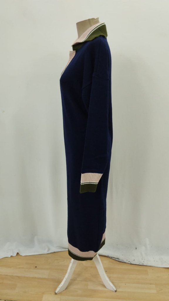 Kadın Uzun Kollu Yakalı çok Renkli Triko Uzun Elbise