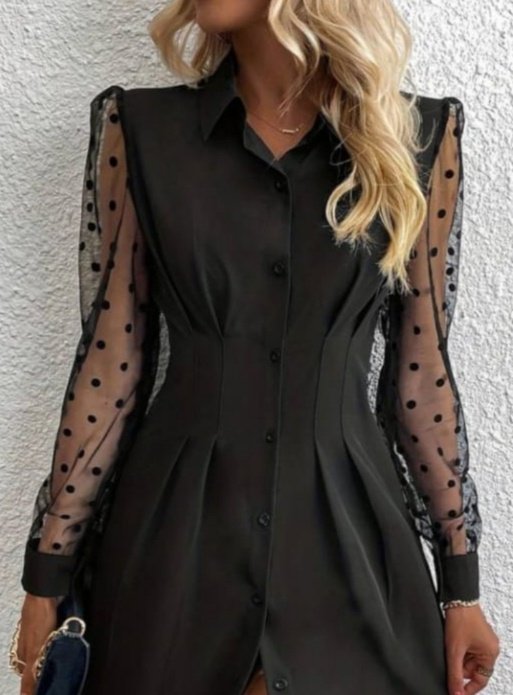 Kadın Uzun Kollu Yakalı Düğmeli Mini Ithal Krep Elbise