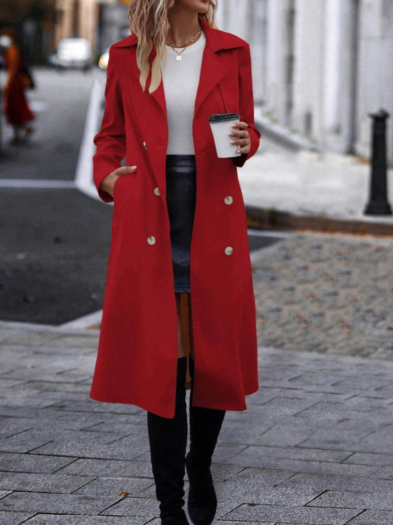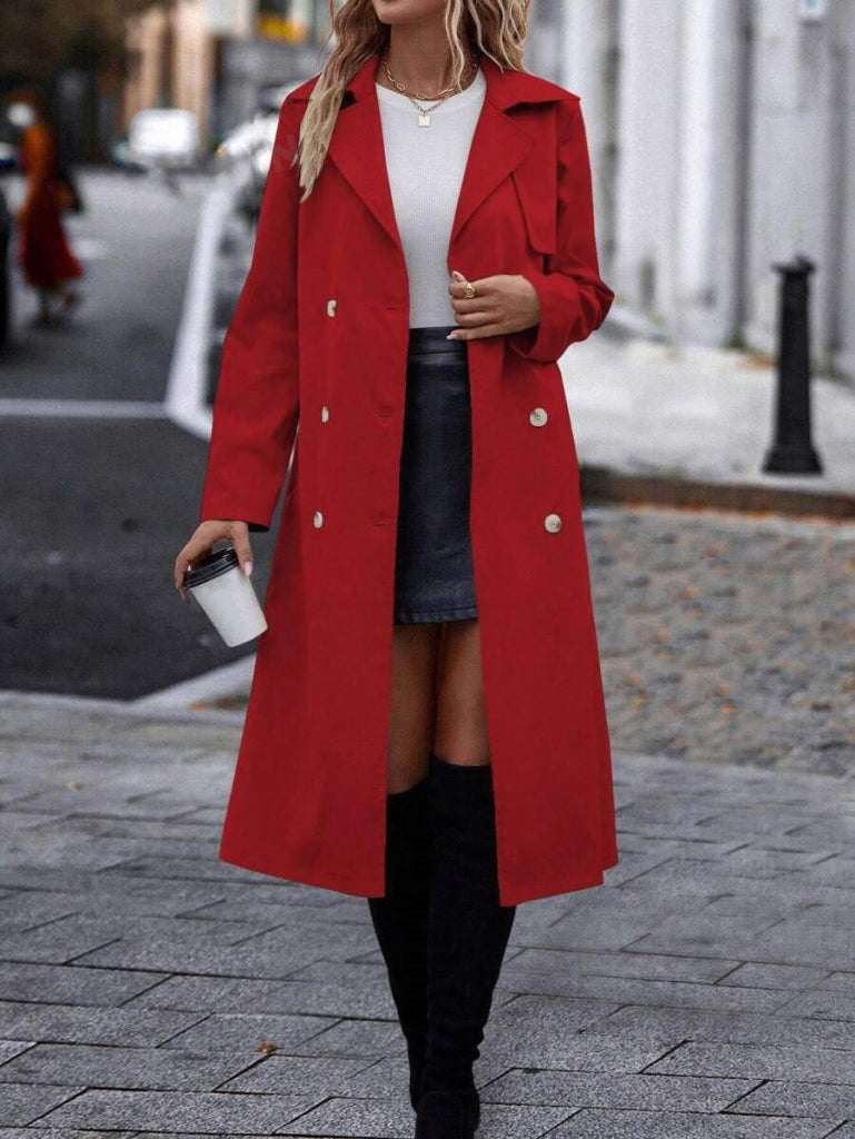 Kadın Uzun Kollu Yakalı önden Düğmeli Beli Kuşaklı Midi Gabardin Trençkot