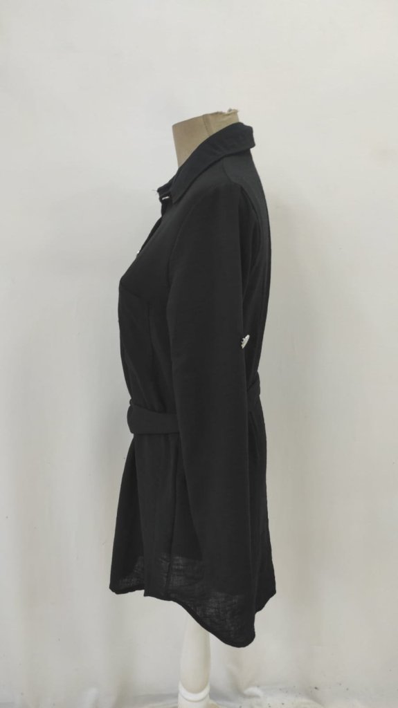 Kadın Uzun Kollu Yakalı önden Düğmeli Beli Kuşaklı Mini Ithal Keten Elbise