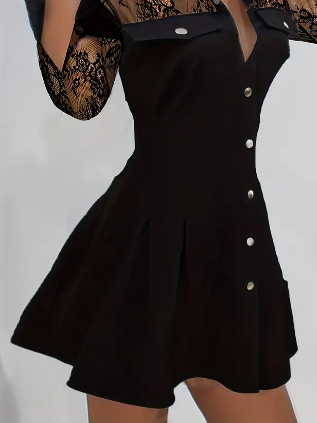 Kadın Uzun Kollu Yakalı önden Düğmeli Cep Detaylı Mini Modal Elbise