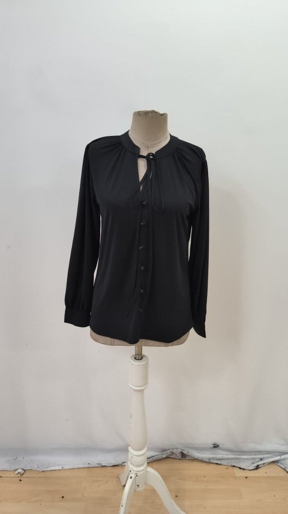Kadın Uzun Kollu Yakalı Yakadan Bağcıklı Düğmeli Sandy Bluz