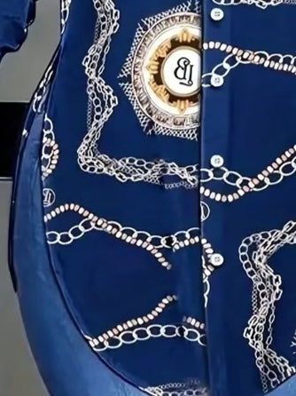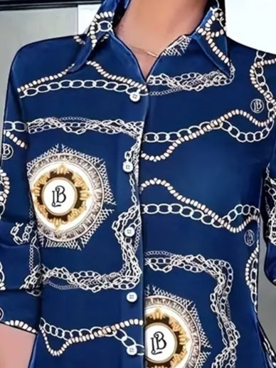 Kadın Uzun Kollu Yanları Yırtmaç Detay Desenli Gömlek