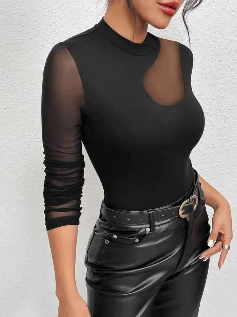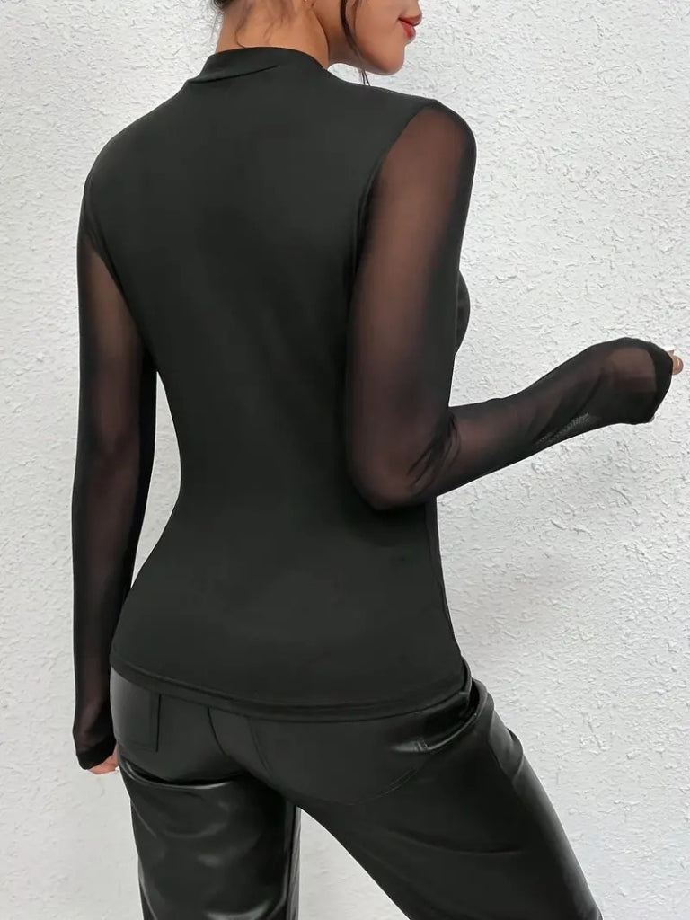 Kadın Uzun Kollu Yarı Balıkçı Yaka Kolları Tüllü Dalgıç Bluz