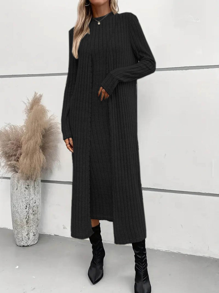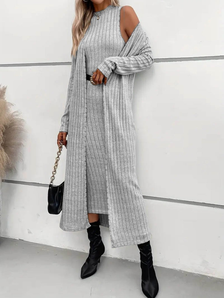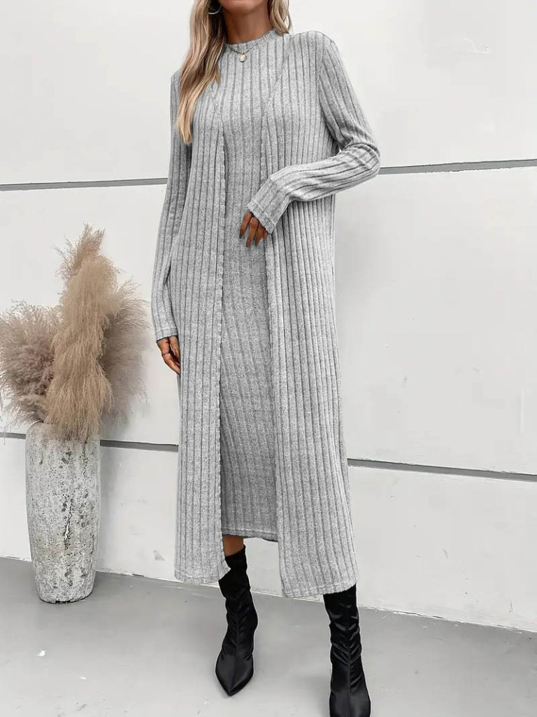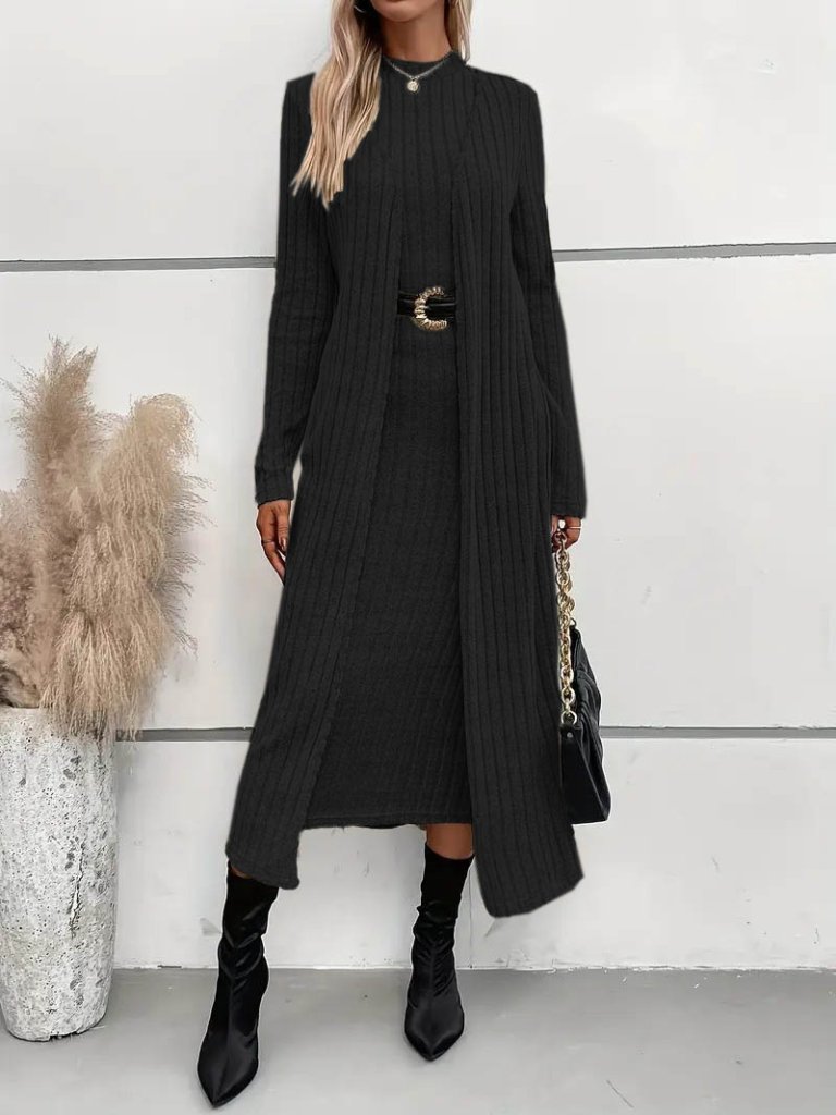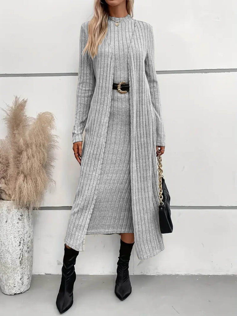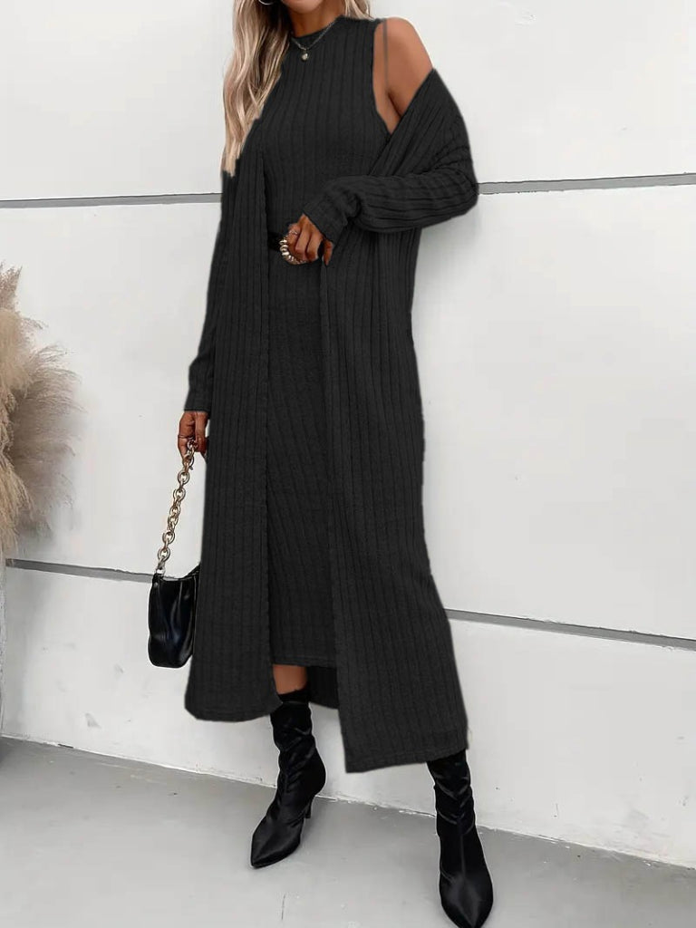 Kadın Uzun Kollu Yarı Balıkçı Yaka şardonlu Dalgıç Elbise Ve Uzun Hırka Ikili Takım