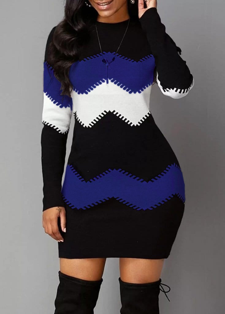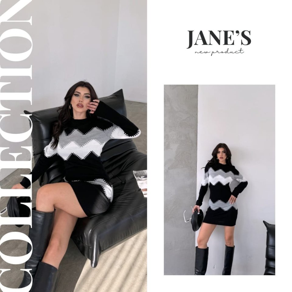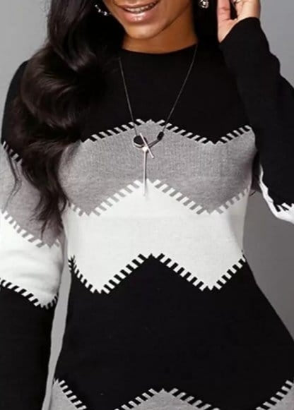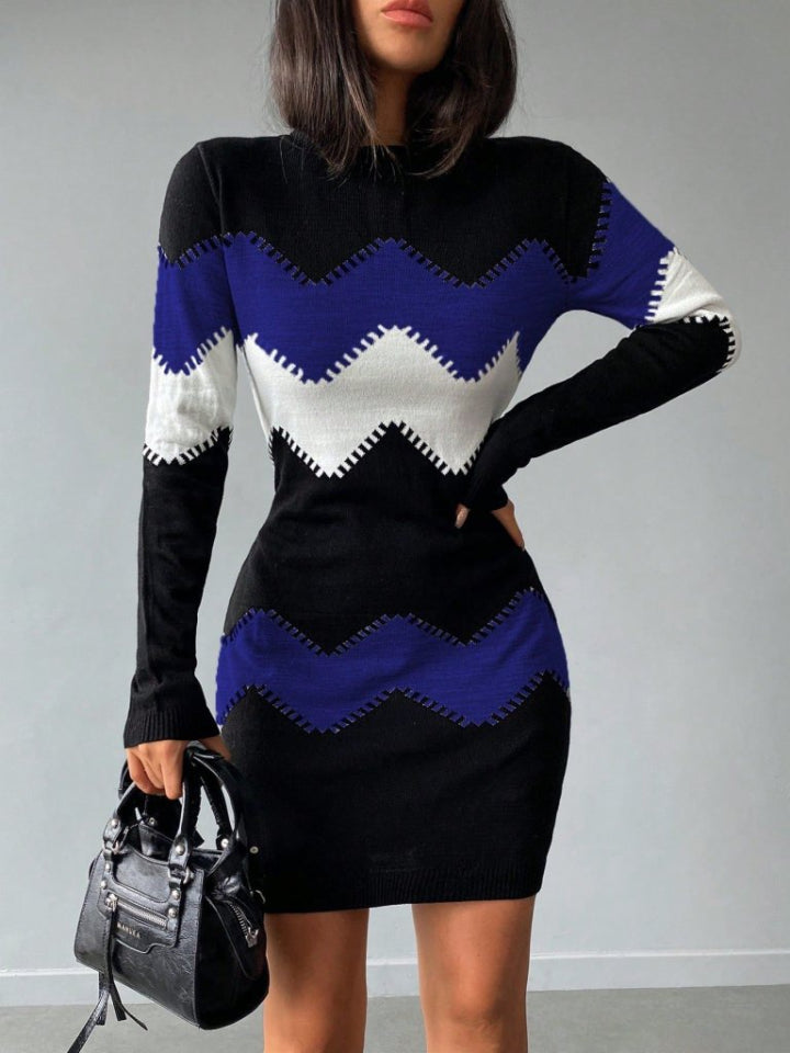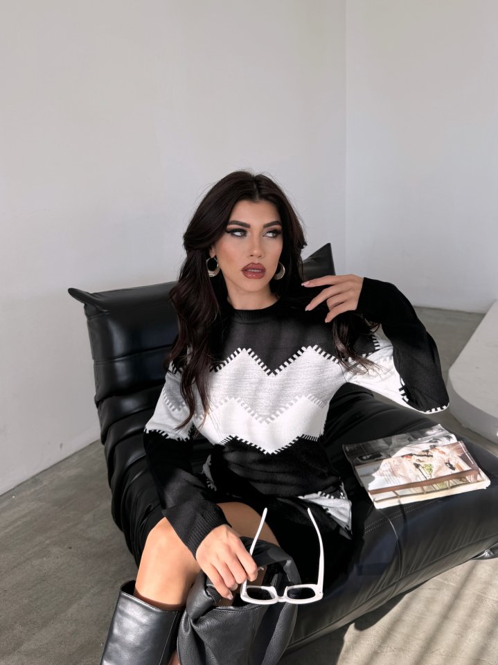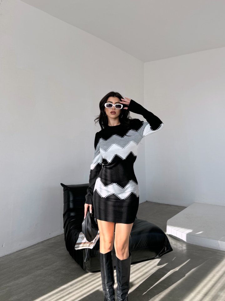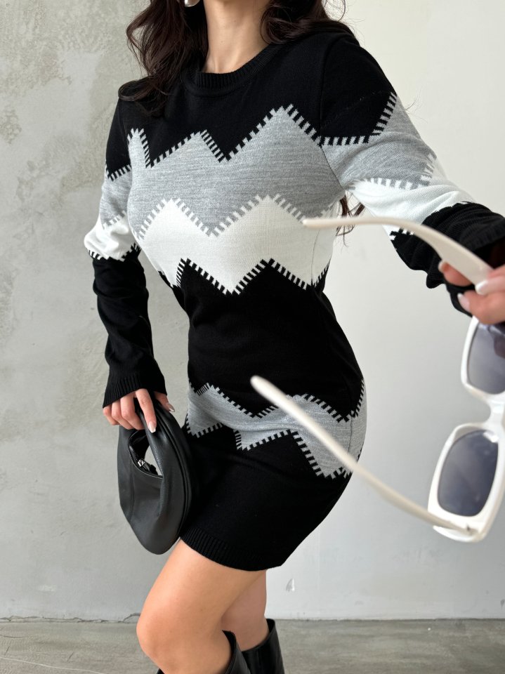 Kadın Uzun Kollu Zigzag Desen Triko Elbise