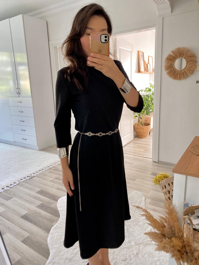 Kadın Uzun Truvakar Kol Bisiklet Yaka Midi Modal Elbise