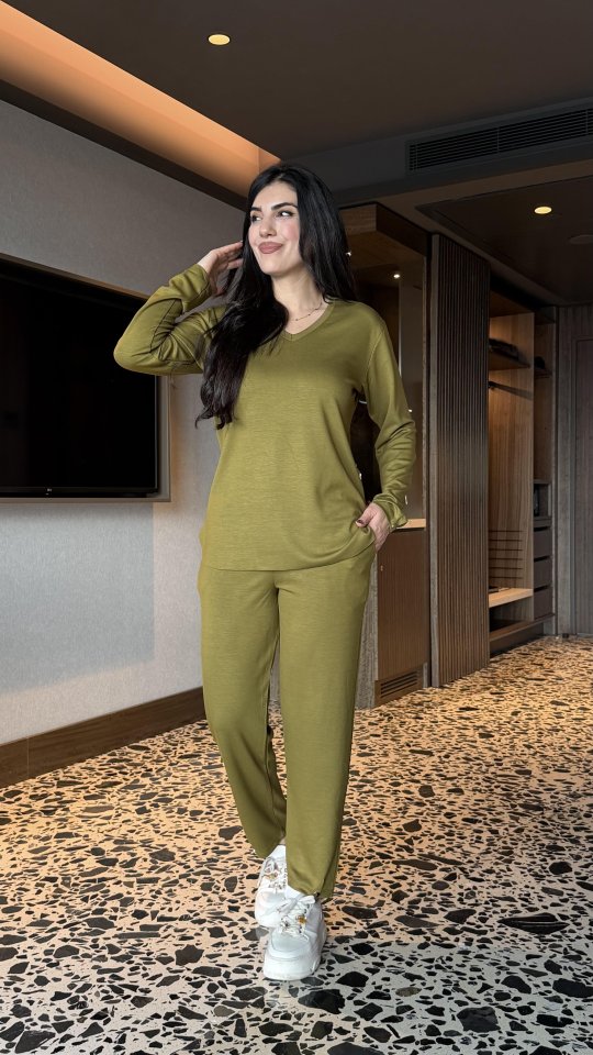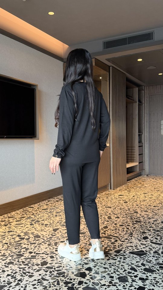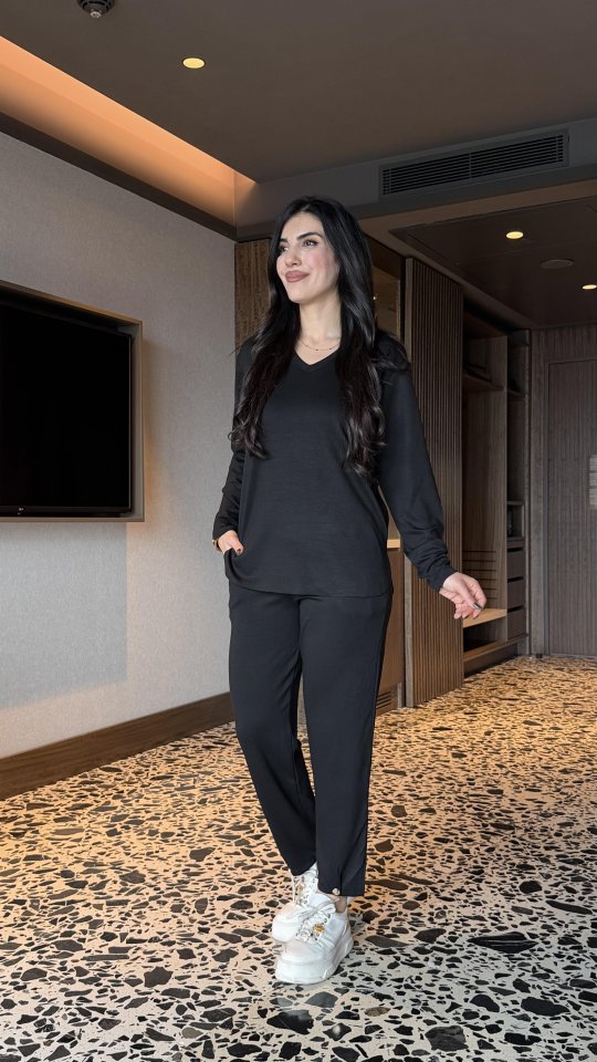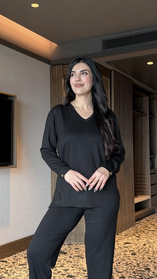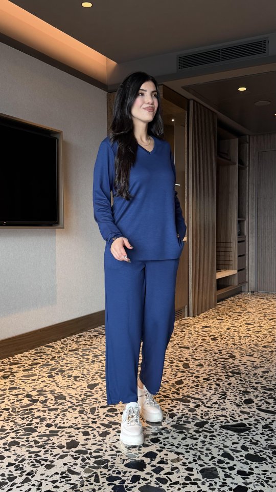 Kadın V Yaka Bluz Ve Pantolon Ikili Takım