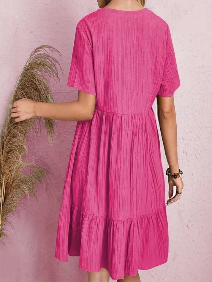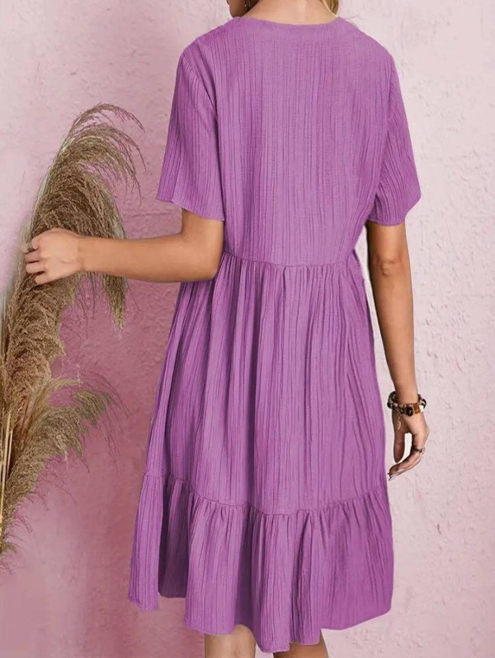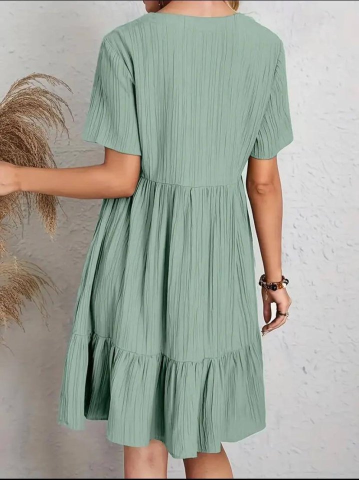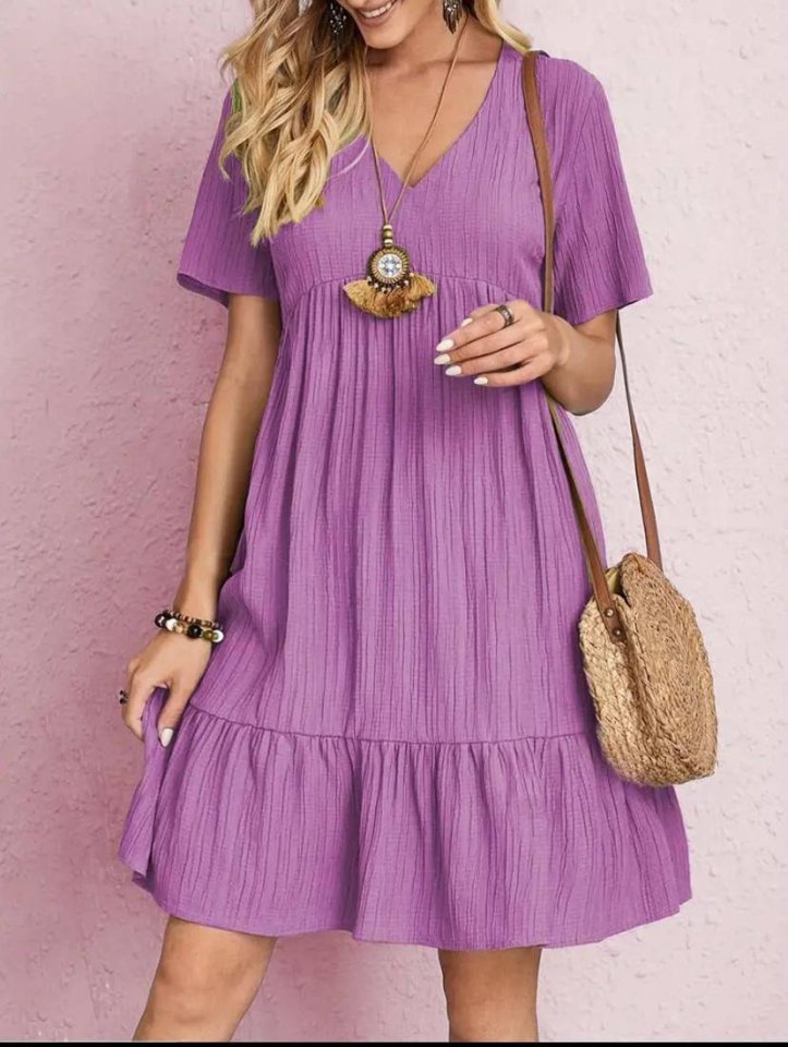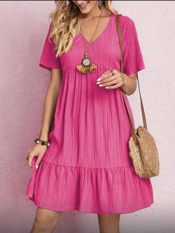 Kadın V Yaka, Fırfırlı Bürümcük Kumaş Elbise