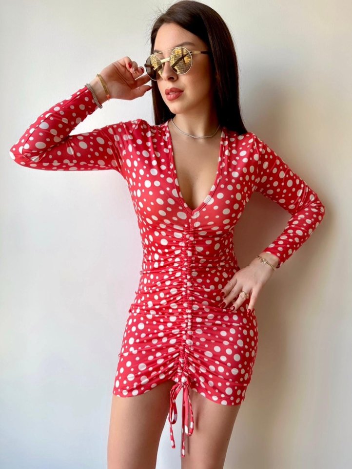 Kadın V Yaka önü Asansör Büzgü Detay Fırsat ürün Mini Elbise