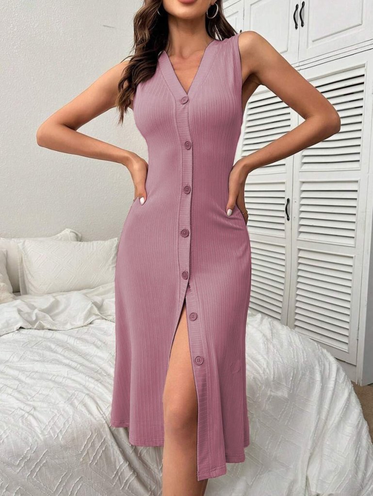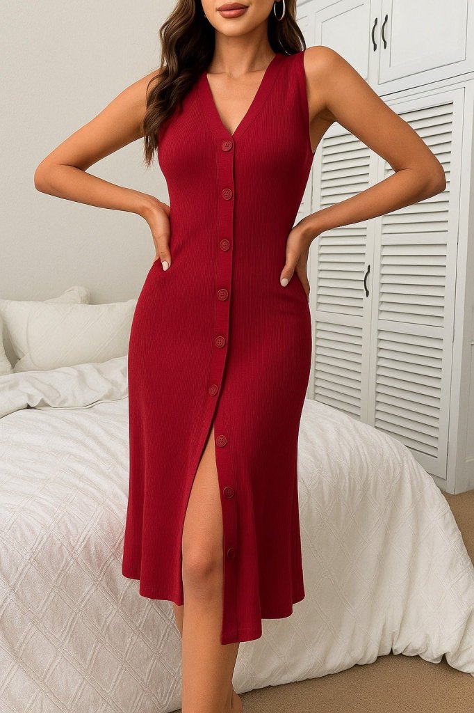 Kadın V Yakalı önden Düğmeli Kaşkorse Elbise