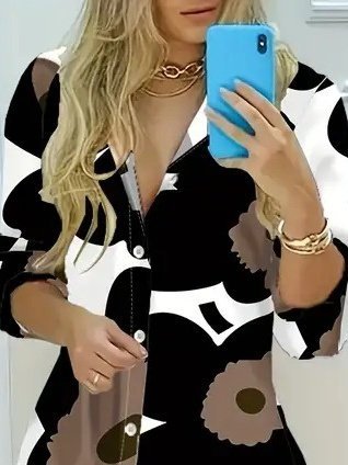 Kadın Yakalı önden Düğmeli çiçek Desenli Uzun Süprem Elbise