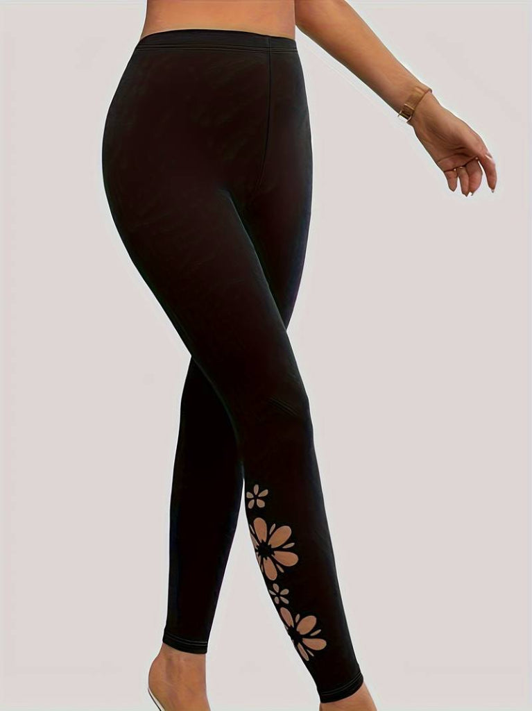 Kadın Yanları Lazer çiçek Kesim Yüksek Bel Dalgıç Tayt